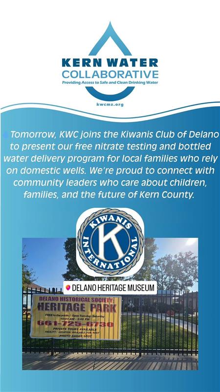 Thank you to the Kiwanis Club of Delano for the opportunity to present our mission at the February meeting! KWC is committed to supporting families who rely on private wells for drinking water.